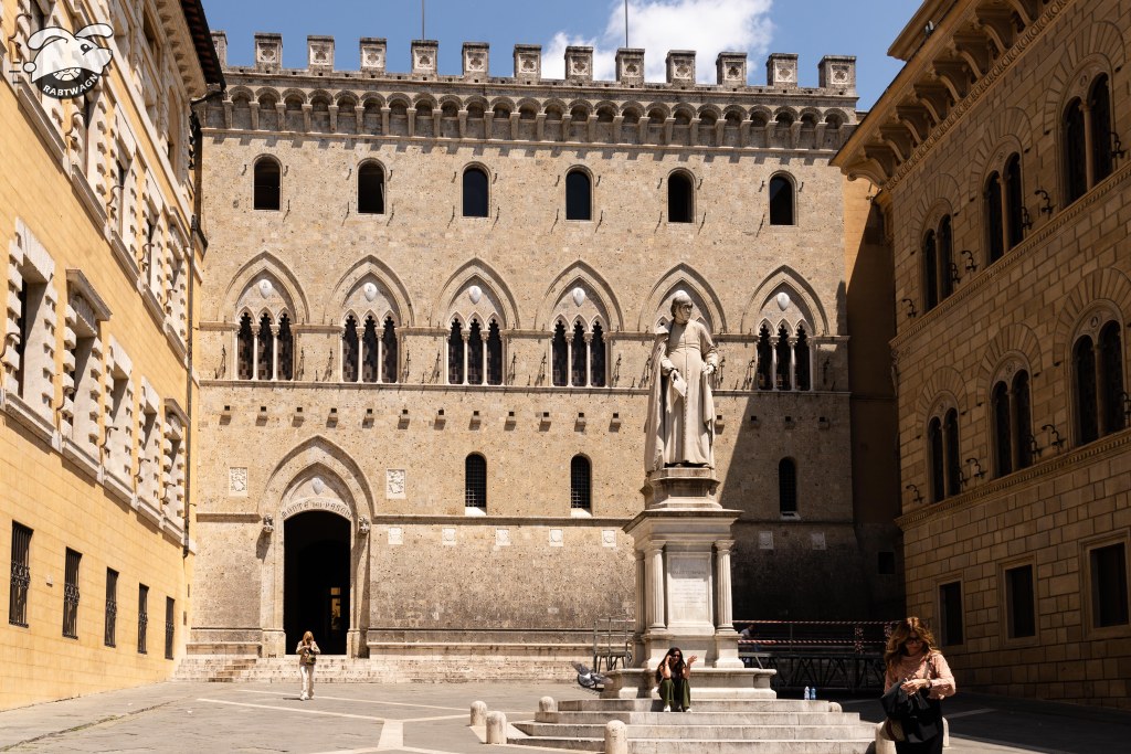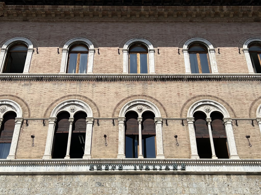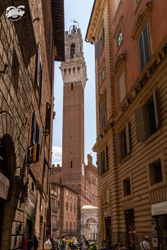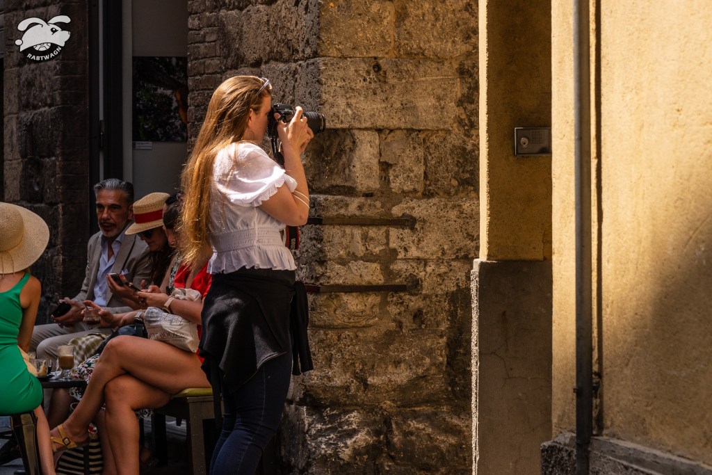 The train ride took less than thirty minutes. Once we entered the main walls of the city, we both pulled out our dSLR cameras. My new iPhone 13 Pro takes some amazing pictures and now with a RAW format that has made it even better. However, after comparing photos from the two devices, I still feel the dSLR clearly takes the win. We walked back to Piazza Del Campo while stopping at various stores along the way to see what they had to offer. In the piazza, we made our way over to the base of the tower. I inquired about tickets and sadly everything was booked up until six in the evening. That would not work for us as we had plans later in the day.