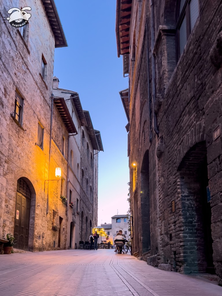 That evening we jumped on the bus back up to San Gimignano. We went back to a few stores to pick up souvenirs we didn’t want to carry on our bikes. My favorite store was: Il Negozio Delle Curiosità. Which translates to: The Curiosity Shop. It sells customizable ceramics which are hand-made and hand-painted by five different local artists. The bowls and plates were gorgeous! I loved a particular bowl that depicted a San Gimignano scene with bright oranges and blues. It is called the “Tuscan Landscape” line. Don’t worry I got his business card and he ships to the U.S.