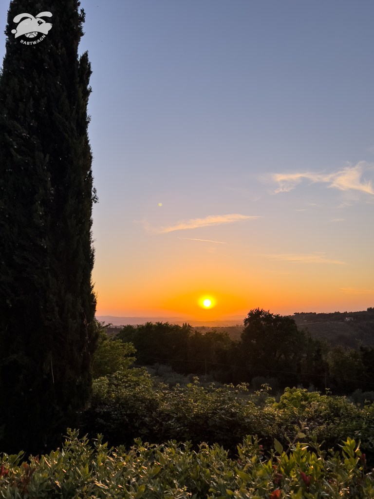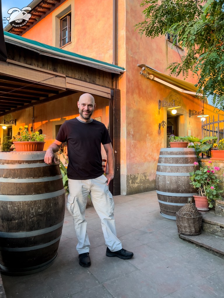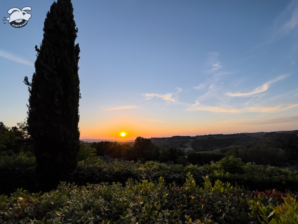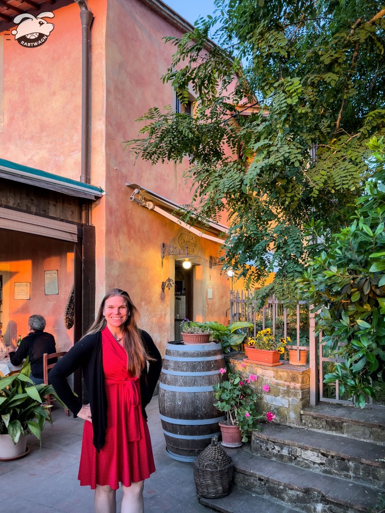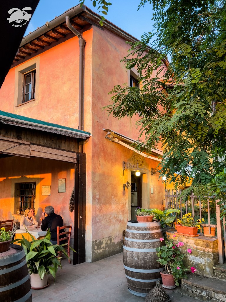 With the sun dropping we hopped back into the car and drove over towards Barberino. Arriving just before sunset at Pieve Di San’tAppiano we walked over to the restaurant Osteria L’Antica Quercia. Again we sat outside with a wonderful view and a beautiful sunset. This was the perfect example of what we photographers like to call the golden hour. And this was a very golden hour. I think we left our dSLR cameras at home so we had to make due with the iPhone 13 Pro. Of course we had another amazing meal.