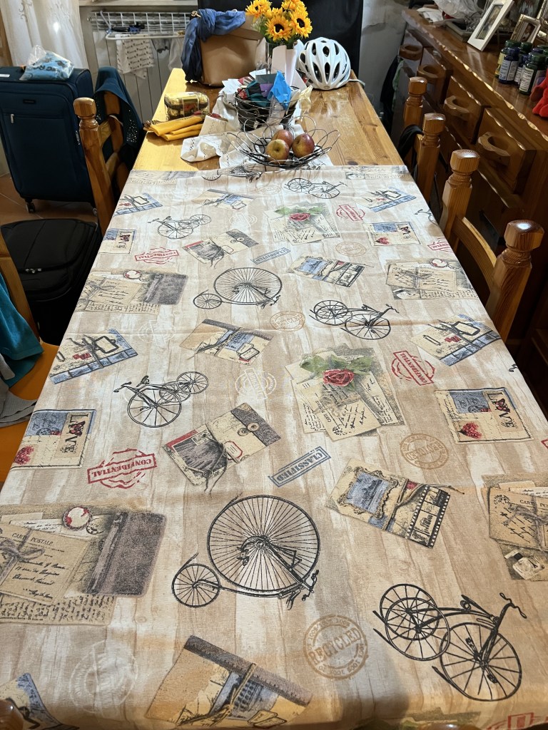 When we returned, we settled into unpacking and getting Andrew’s bike organized. He has an extra Trek he left in Italy and it needed some TLC and a newly waxed chain he had brought from the states. We limped along until almost 9 p.m. and then collapsed into bed, having been awake for 24 hours.