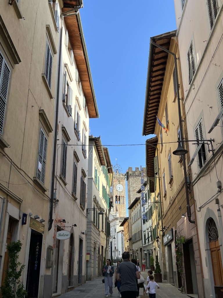We wanted to squeeze in one more bike ride before we had to return the rental bike so we set off Saturday morning for a ride to Casole D’Elsa. The climb up to this town was not as arduous as some of the others but it was not nothing either. The top was well worth the effort. This town was more artisan than the others and a particular leather artist caught my eye. After an obligatory gelato break, I bought some souvenirs for the kids and we head back down towards the town. We had to return the bike to Gippo and W and Elizabeth were meeting us at the bike shop to drive us home.