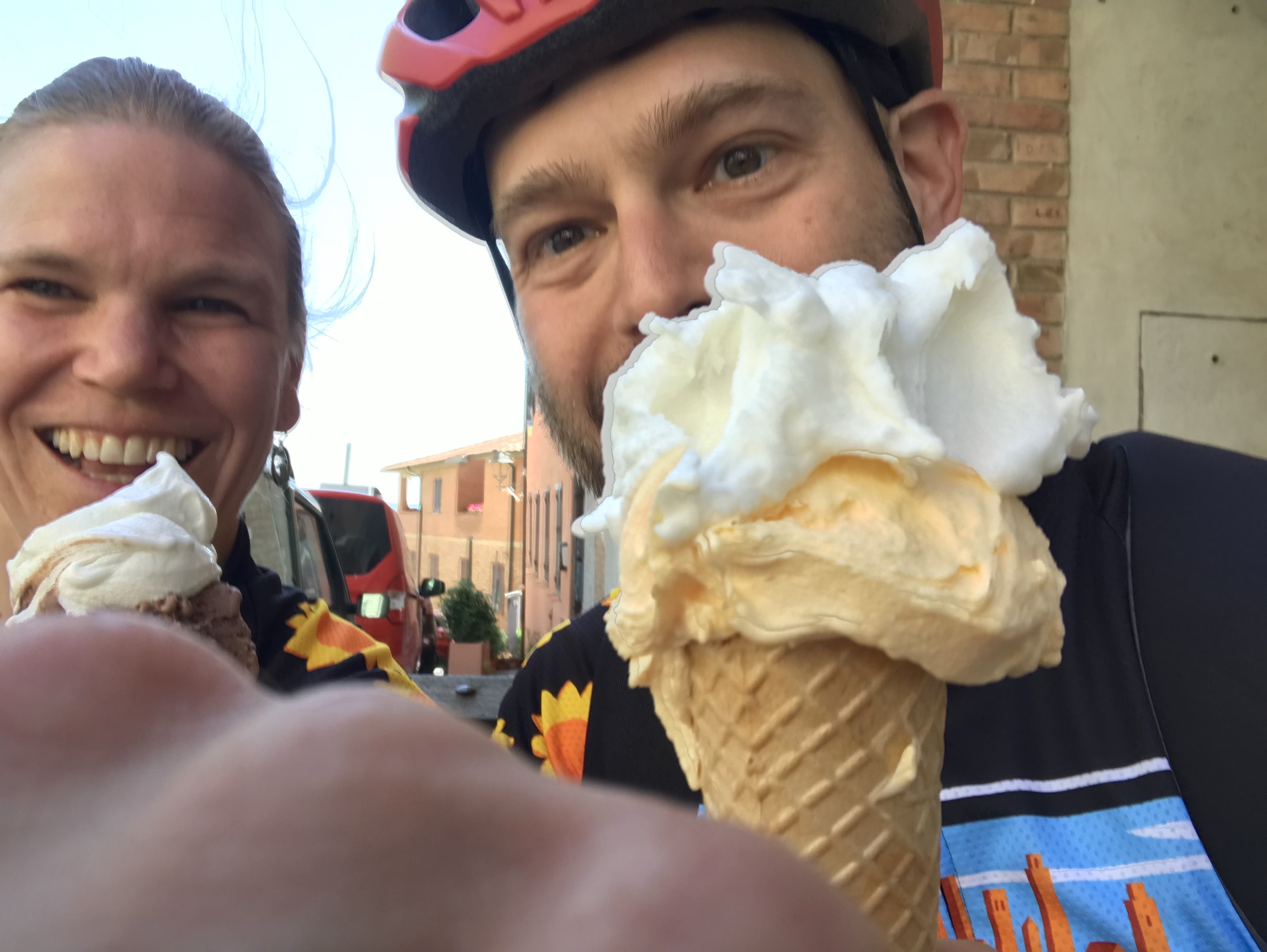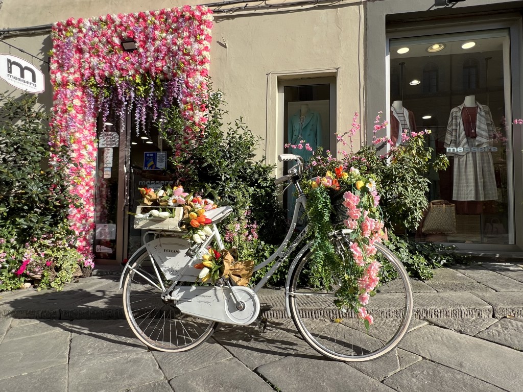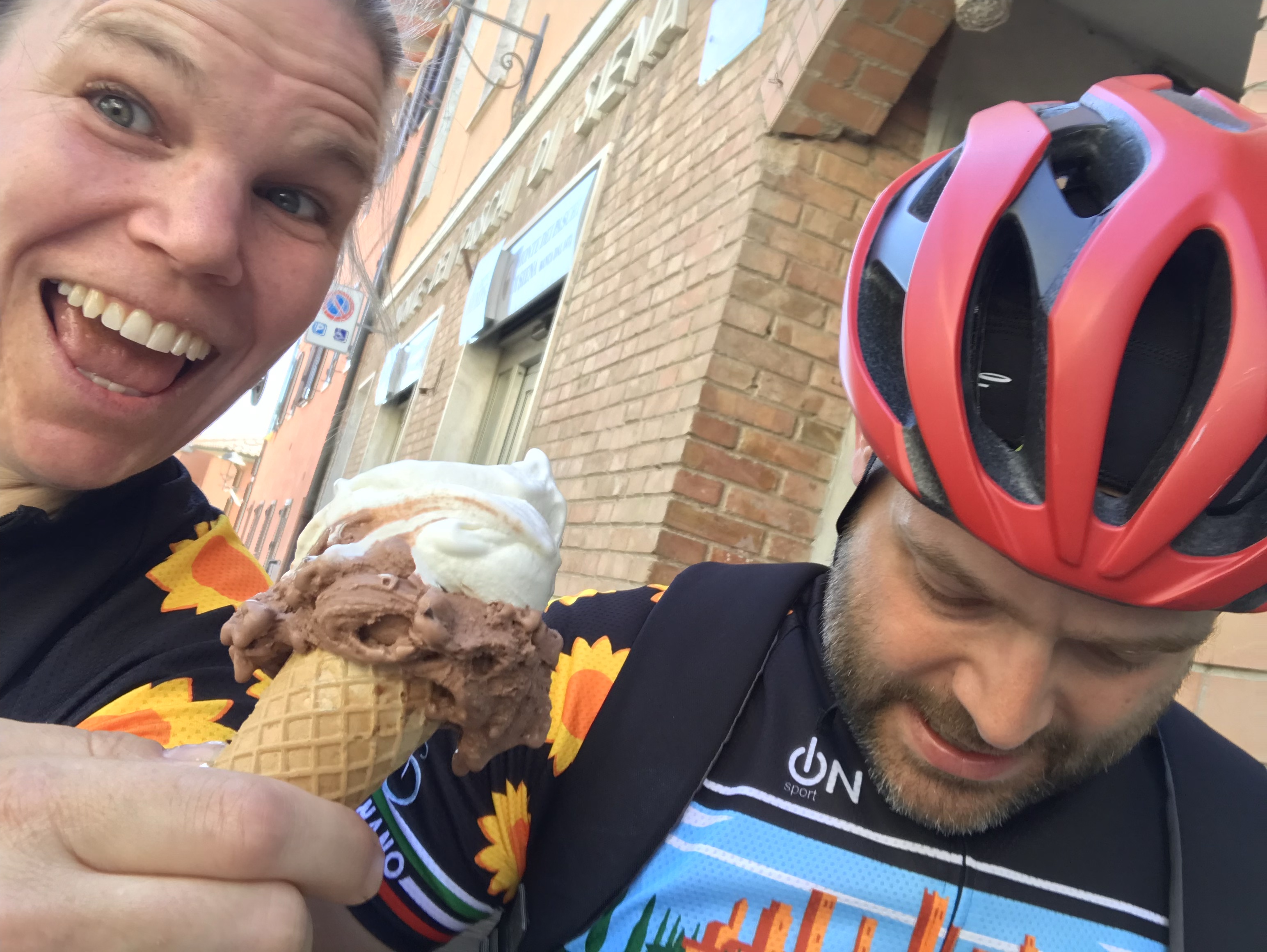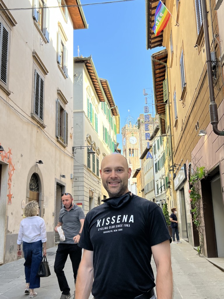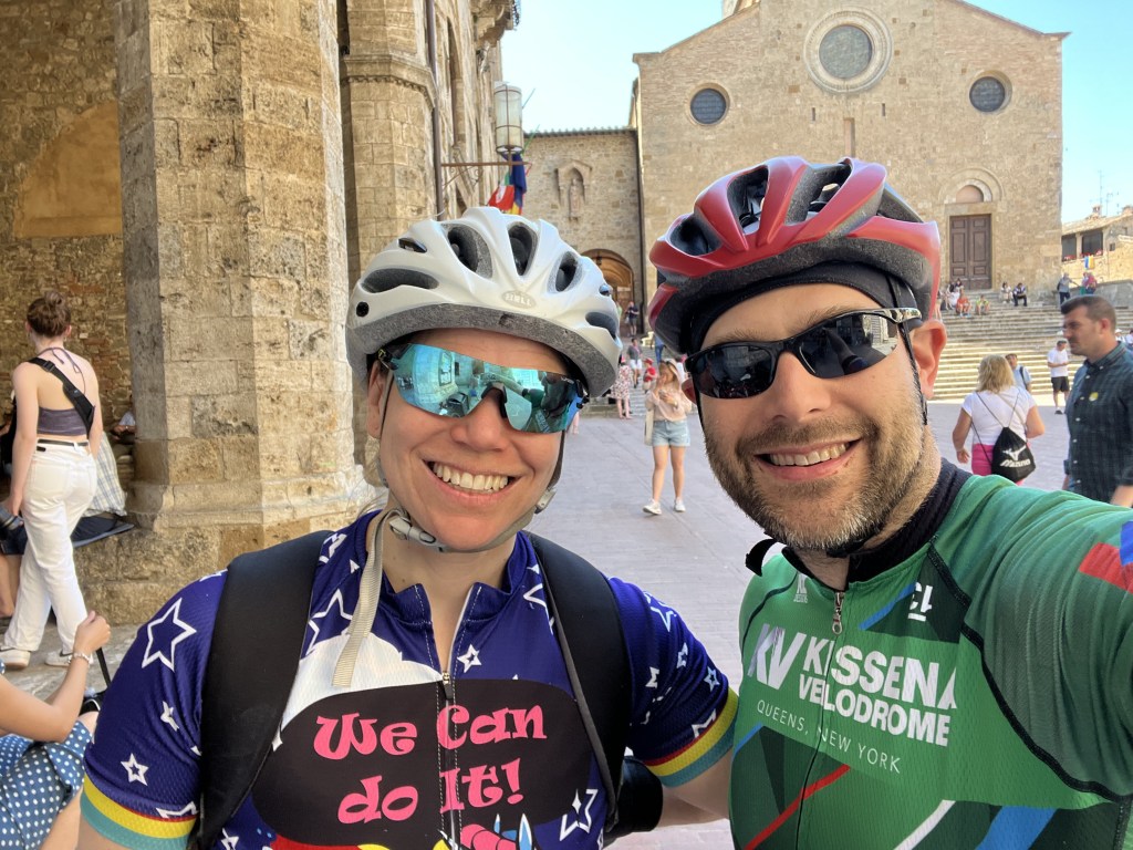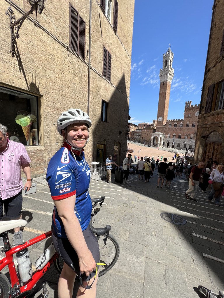 Finally we made it into town and right away I ran into three groups of people I knew, which of course had us stopping and chatting for a long time. We walked through town and had a snack in the main square with the Duomo before heading down Via San Giovanni. We stopped in a shop and Amy and I picked up matchy matchy cycling jerseys.