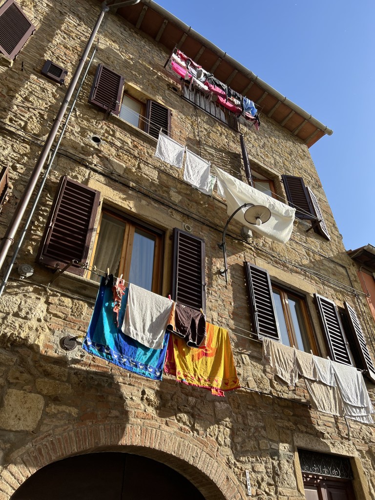 Elizabeth’s boyfriend met us at the hairdresser and both Andrew and I got to meet him for the first time. He has such a warm demeanor and bright smile! We drove in two cars up to Colle Val D’Elsa as we had some time to spare before dinner at Gaia’s. We parked at a public parking lot and walked along the town. I can’t really describe it. Everything is old and magical in Tuscany! People are living their best lives in these super amazing medieval stone houses along walled communities. We walked along and saw a few people doing regular things like watering plants. Imagine living somewhere so majestic and beautiful! While I have to live in Brooklyn of all places!