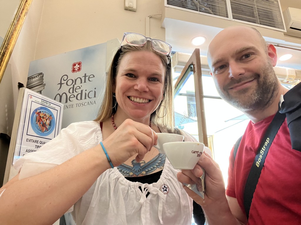 Andrew had previously been to Uffizi as a young boy on a school trip and readily admitted to being bored to tears as a child. It was fun to return with him as an adult with a deeper appreciation for art – even though the religious motifs aren’t really our thing we can appreciate the masterpieces for what they are.