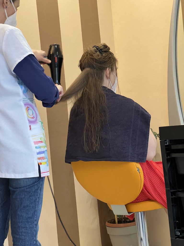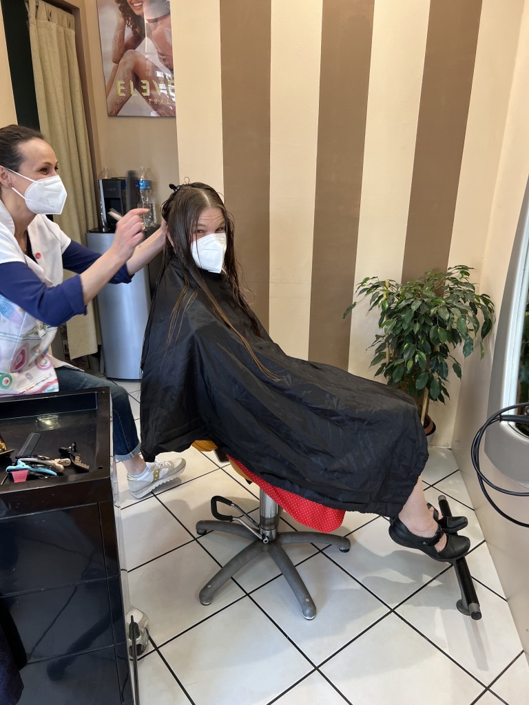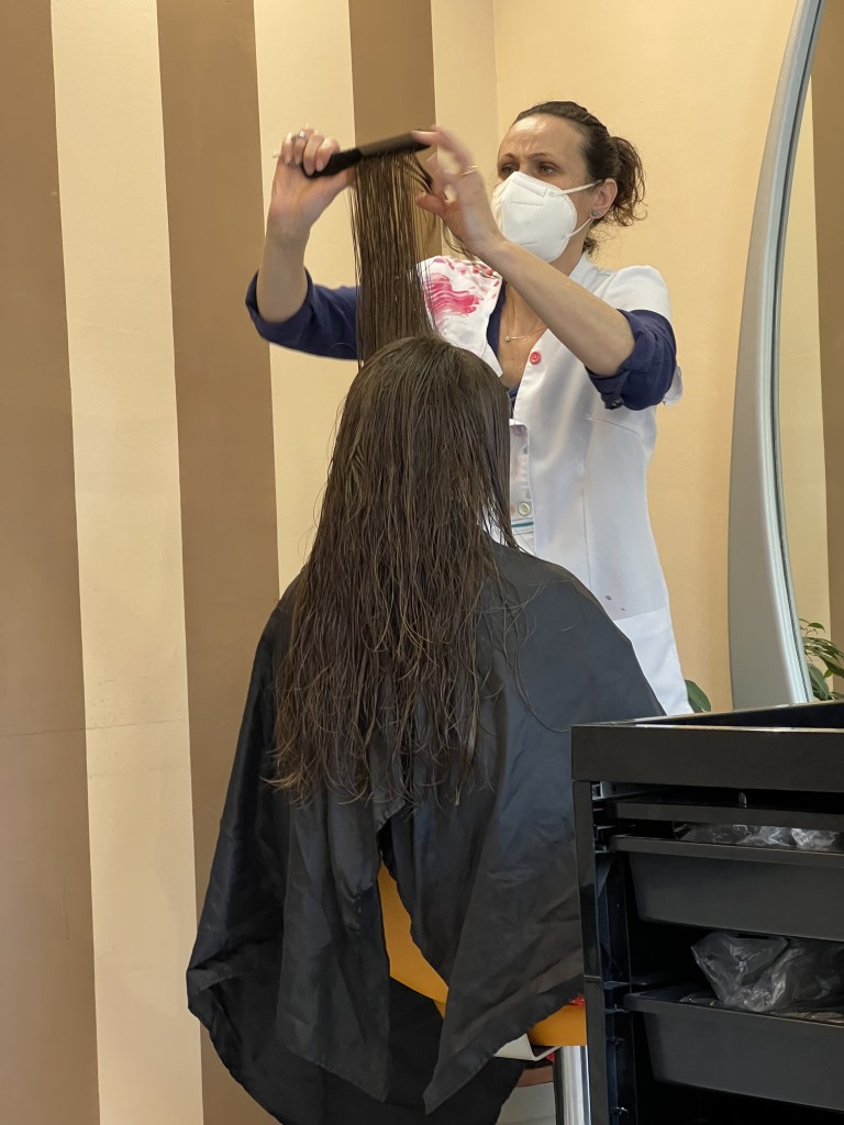 Shortly after getting back home, we got ready to go out again. My sister arranged for a haircut at her hairdressers for Amy. Amy had not had a proper haircut since the pandemic so she was due. Coupled with the ridiculous NYC prices it was determined that it was much cheaper to get the haircut in Italy. After a bit of discussion on what needed to be done, Amy was soon taken care of. The result was that Amy looked stunning, and I think she also really enjoyed the whole pampering experience.