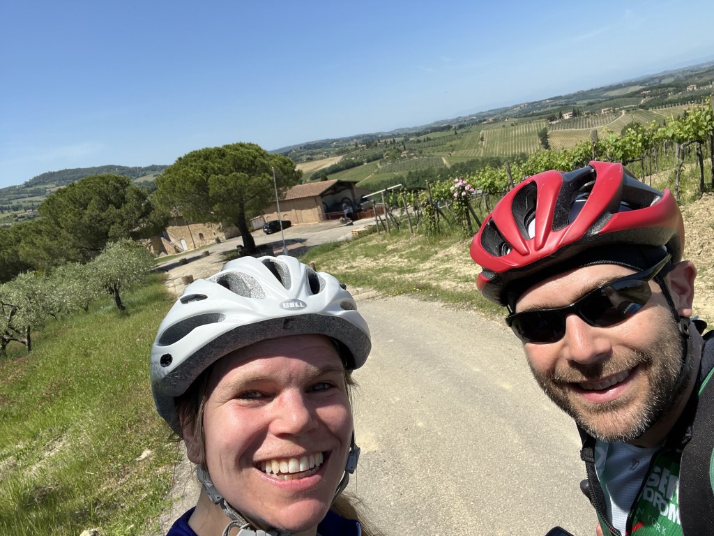 We are back in the saddle! To give our walking feet a little break, we scheduled another bike ride for this day. Today was especially special because I was going to see the town where Andrew grew up, San Gimignano! But I had to earn my gelato by climbing a bunch of hills (as usual).